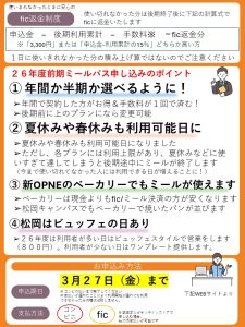 また、26年度よりプランの変更がございますので、ご確認いただき、自分にあったプランをお申込みください