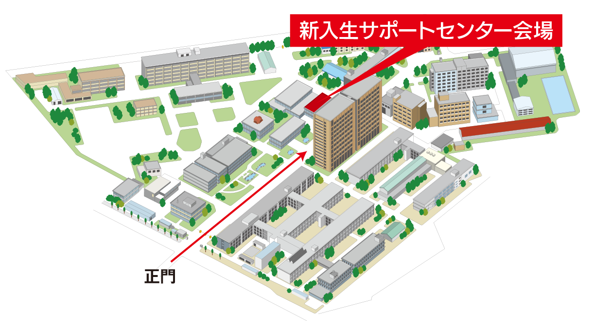 - 正門の守衛所で駐車料金100円をお支払いいただければ学内に駐車可能です。