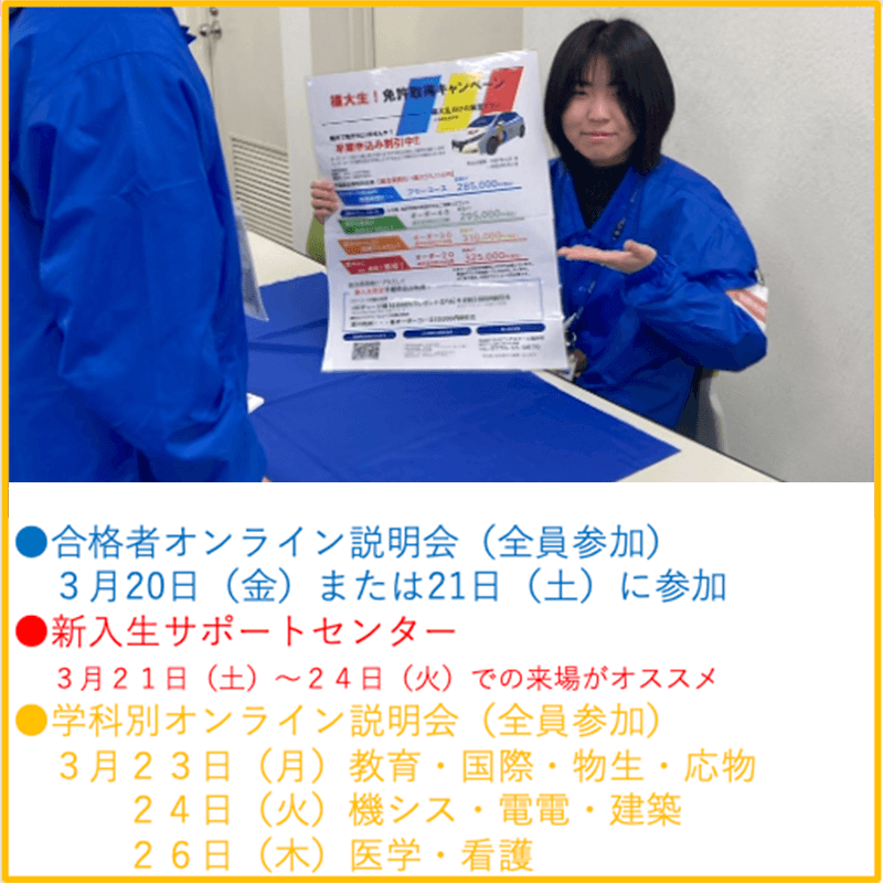 福大生の学びや暮らし、様々な手続きについてガイダンスを行います。
