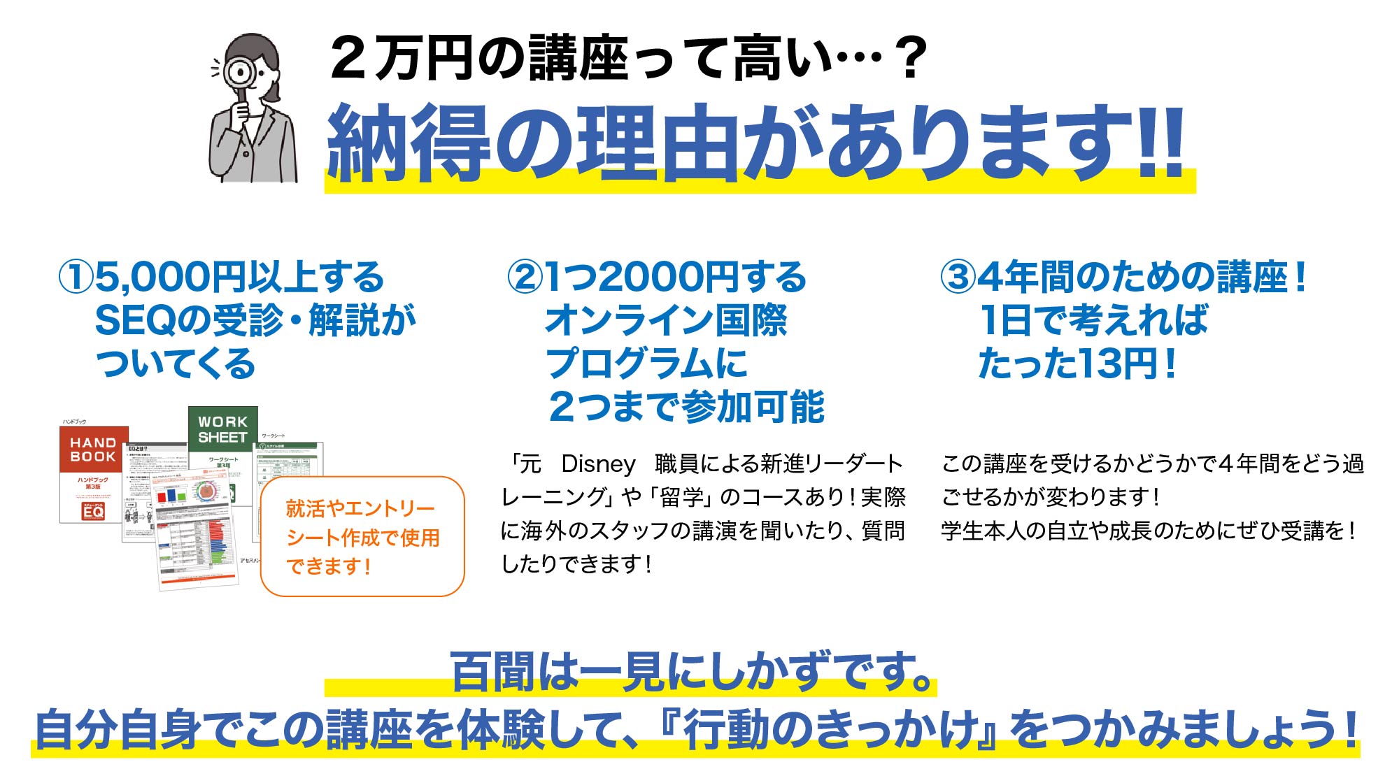 就活に向けて「何を始めればいいのか」「大学生活をどう過ごせばいいのか」そんな疑問の答えと、その意味がこの話を聞けばきっと見つかります。あとは行動に移すだけです。